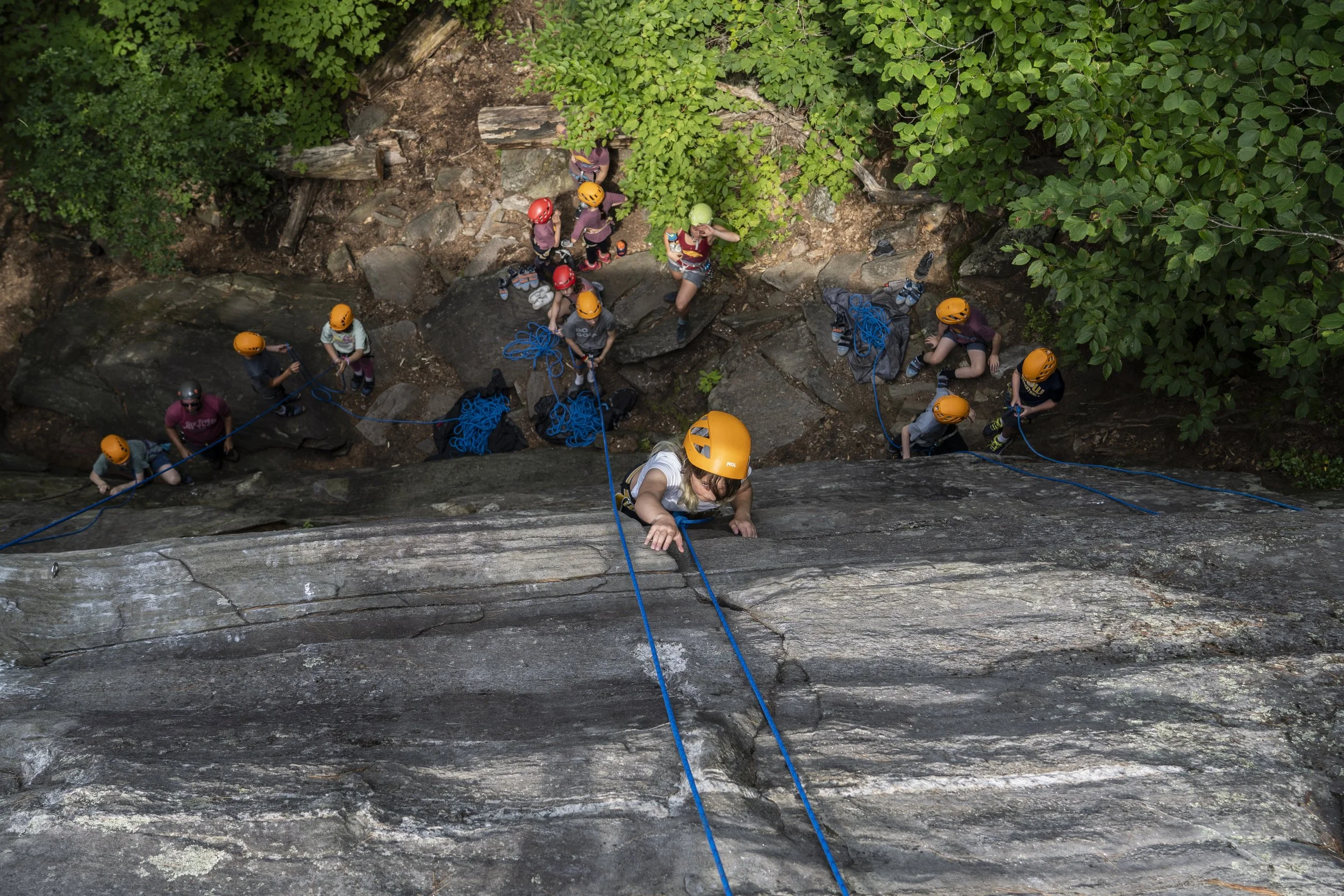 Our outdoor summer camp offers three different camps for a variety of ages and skills. Camps run Monday through Friday, 8 am - 5 pm. Our Adventure Camp for ages 9 - 12 is a slower paced camp with outdoor rock climbing, hiking, and swimming. Our Outdoor Skills Camp is for ages 12 - 16, with a focus on safety skills in the backcountry. This includes navigation skills, first aid training, and outdoor safety skills like fire building and emergency procedures. This camp also includes outdoor rock climbing, hiking, and swimming. Our Advanced Climbing Camp for ages 13 - 17 spends 5 days climbing at Rumney working on climbing techniques, confidence building, and skills.